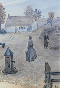 De bewoners van het pand Marktstraat 11 zijn bevriend met Sandra en het was hun wens de oude situatie op de schildering terug te brengen en door Sandra te laten schilderen. Rondom de boerderij en de pomp scharrelen de bewoners en verschillende dieren.
