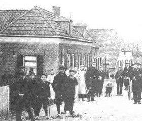 Vooraan het huis van bakker Wolters, later cafetaria "Dikke Joep"